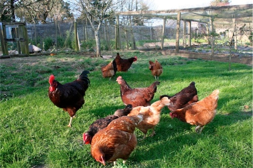 The walled garden is a fox-proof haven for hens and ducks. We currently have about 30 hens that lay us plenty of eggs for breakfast