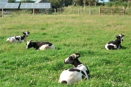 In the fields we keep Jacob sheep which graze around our 80 solar panels which provide nearly all of our electricity. If you are interested in renewable technologies you are welcome to have an informative tour of our solar array and large biomass boiler, which powers all of our radiators and hot water.